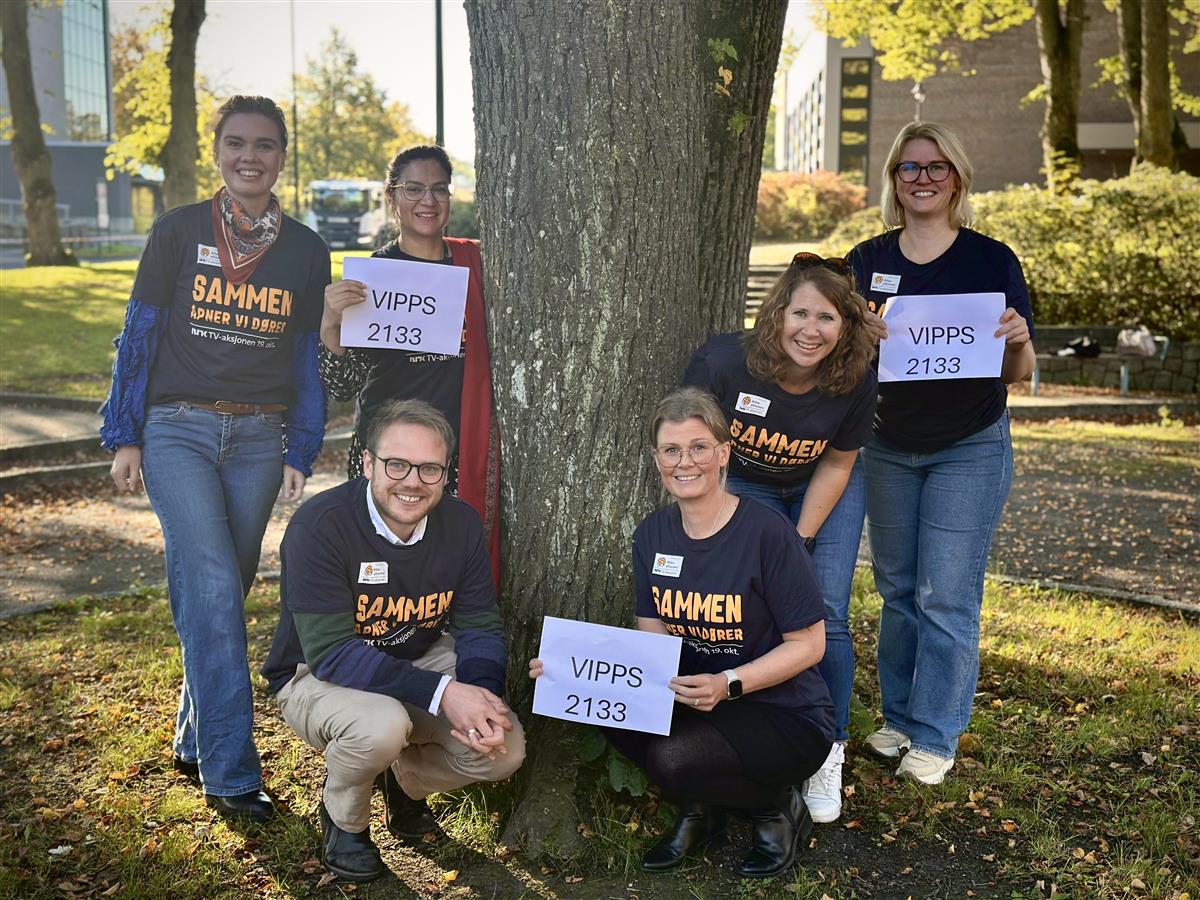 Her er årets TV-aksjonskomité i Moss kommune. Bak fra venstre: Ida Lisette Østberg (Kirkens Bymisjon), Amber Khan (Moss kommune), Anita Theoline Mørck (Moss i Sentrum), Ida Madeleen Moe (Moss kommune). Foran fra venstre: Niklas Memic-Eriksen ( midlertidig varaordfører) og Silje-Emeline Rostad Bråthen (Moss kommune).