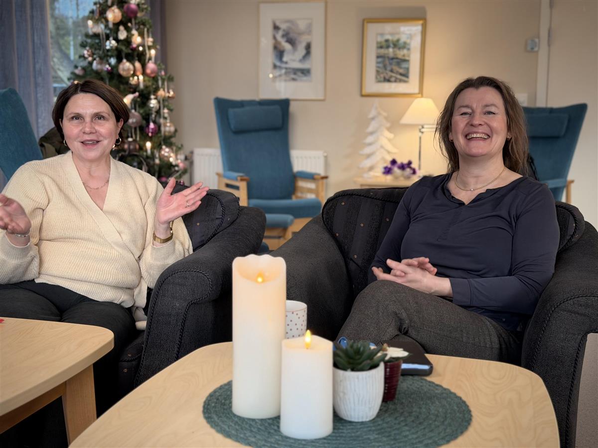 Avdelingsleder Julia Korniyenko og virksomhetsleder Ine M. Heiberg i en av fellesstuene i nye Jeløy seniorkollektiv.