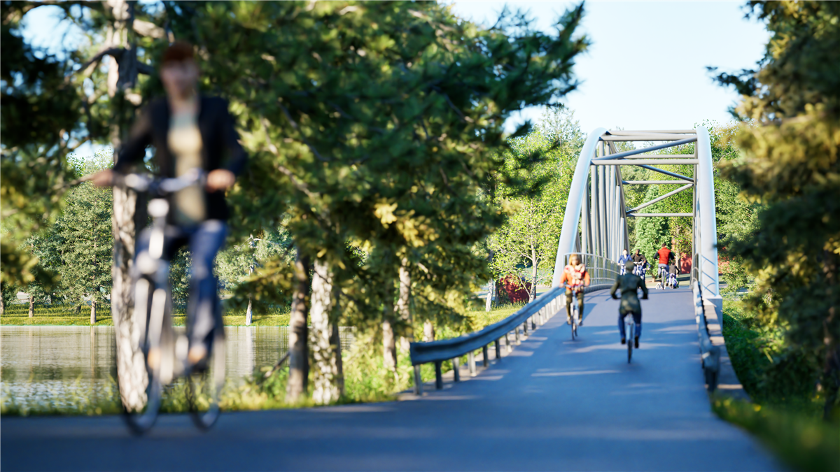 Illustrasjon av ny gang- og sykkelvei over Rødsund i Vansjø