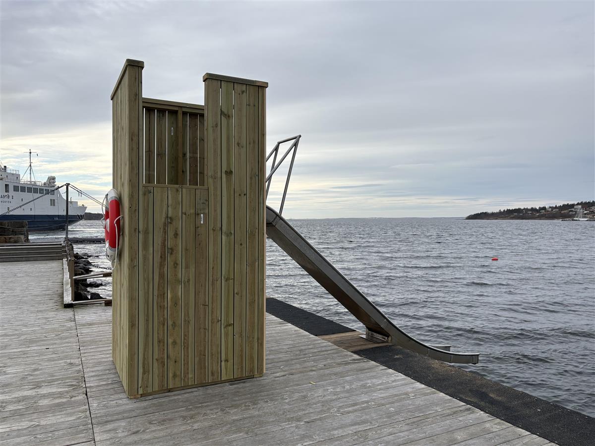 – Det er mange som har savnet vannsklia, og det er moro at vi har fått den på plass igjen, til glede for små og store bade-entusiaster, sier Thorvaldsen.