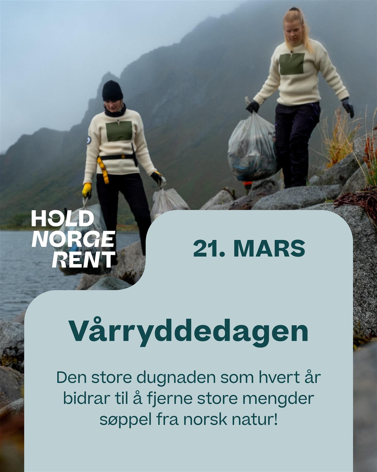 Vårryddedagen bidrar til å fjerne store mengder søppel fra naturen før ferdselsforbudet trer i kraft den 15.april. Vi oppfordrer alle våre innbyggere til å bli med på dugnaden. Du kan også arrangere din egen ryddeaksjon der du bor. Se mer informasjon under på hvordan du kan lage en vellykket ryddeaksjon.